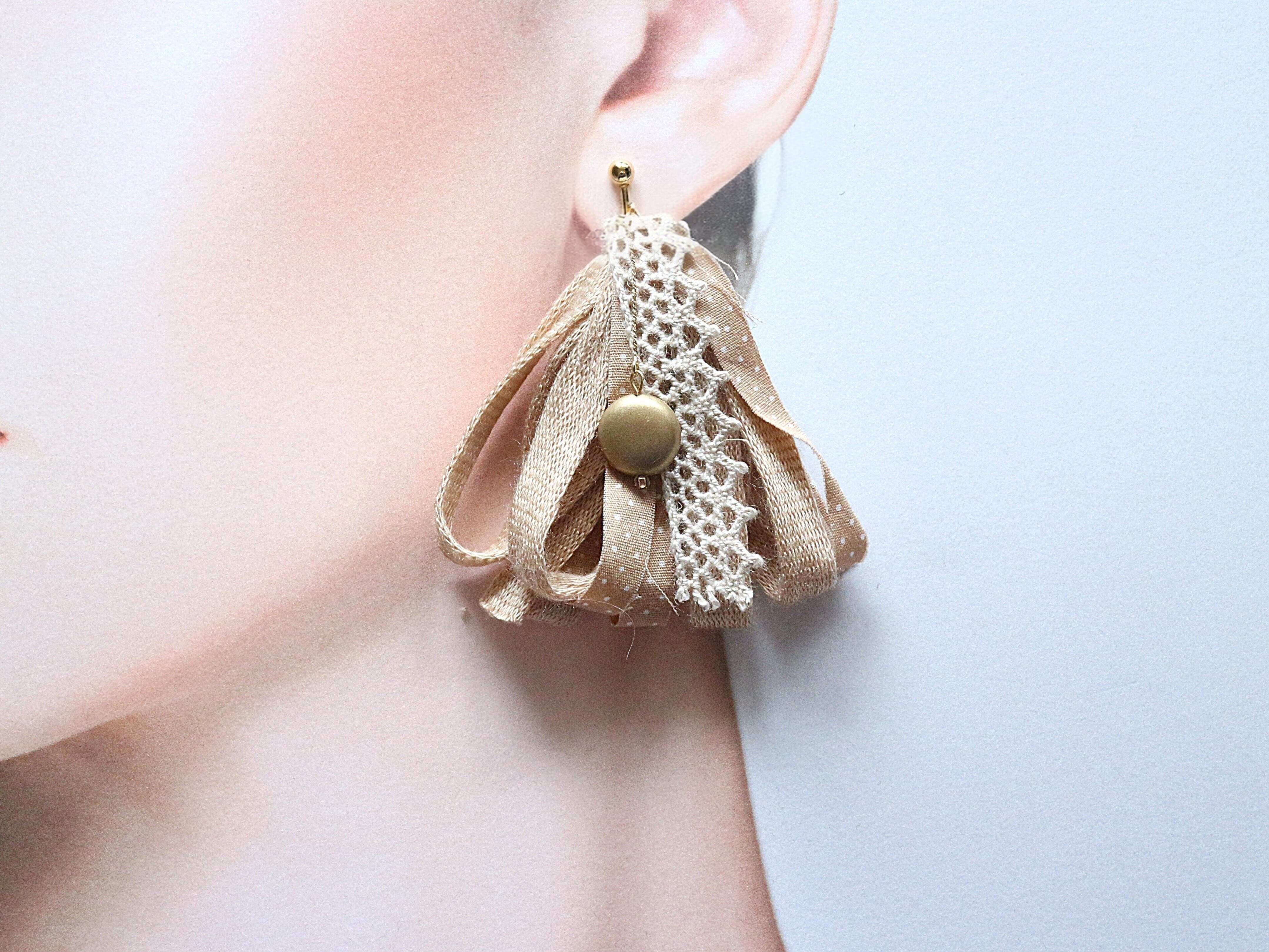 Earrings dot tassel with antique gold beads 〇 DOTタッセル×の耳飾り ベージュドット